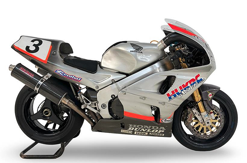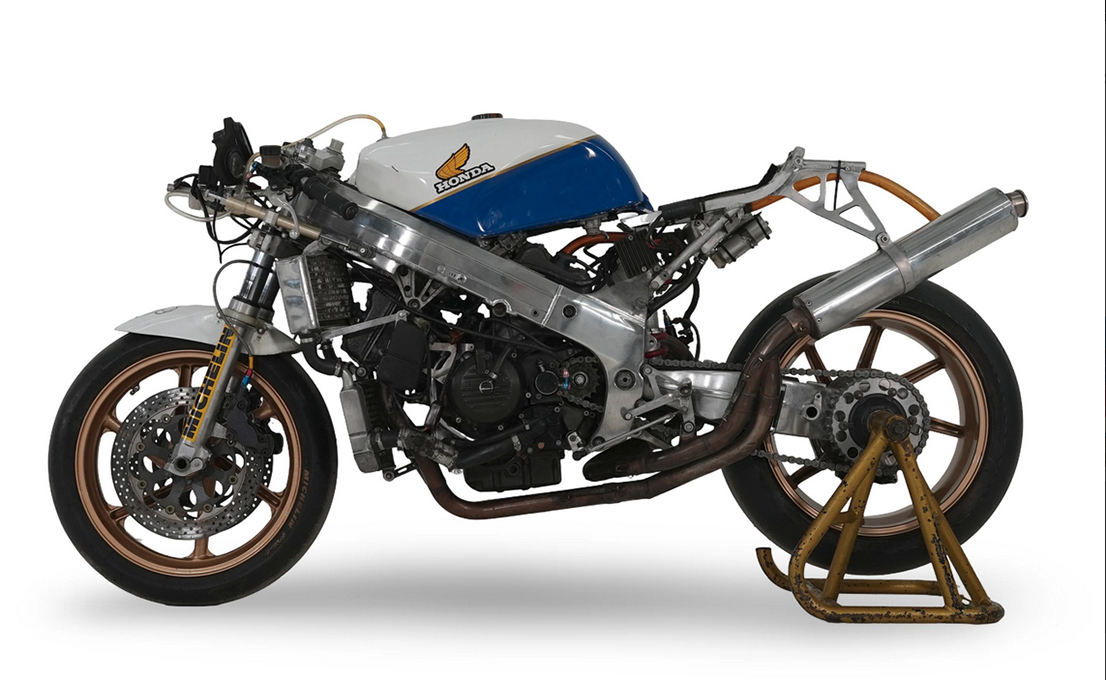 Πρόκειται για αυθεντική εργοστασιακή Honda HRC, με πλαίσιο και κινητήρα χωρίς αριθμούς σειράς, στοιχείο που επιβεβαιώνει τον καθαρά αγωνιστικό της χαρακτήρα.