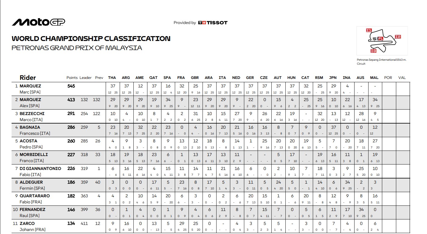 MotoGP 2025, GP Μαλαισίας, Αποτελέσματα